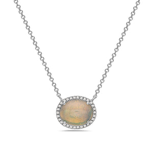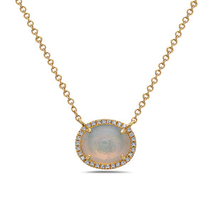 Diamonds / Opal Necklace Yellow Gold Opal 14K
