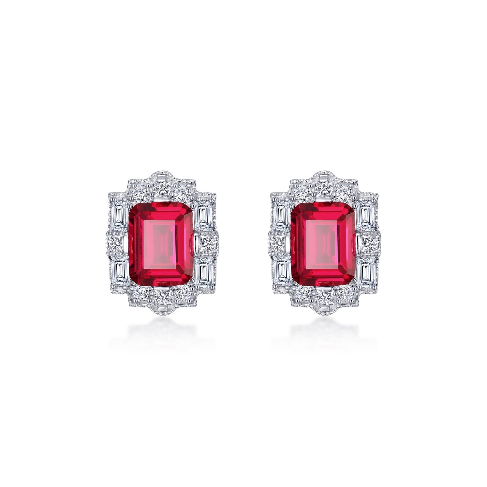 A timeless statement piece. Each of these radiant halo stud earrings features an emerald-cut green fancy lab-grown sapphire center stone surrounded by Lafonn's signature Lassaire simulated diamonds. These earrings are set in sterling silver bonded with platinum.