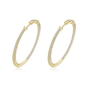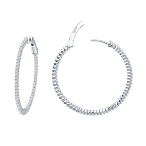 Fun and elegant. These inside out hoop earrings are set with Lafonn's signature Lassaire simulated diamonds in sterling silver bonded with platinum. 35 mm diameter