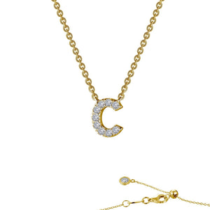 Delicate and sweet. This gorgeous designer "C" letter pendant necklace is set with Lafonn's signature Lassaire clear simulated diamonds in sterling silver plated with gold.