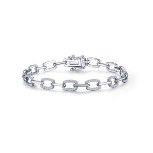 Simple yet sophisticated. This alternating link bracelet is set with Lafonn's signature Lassaire simulated diamonds in sterling silver bonded with platinum.