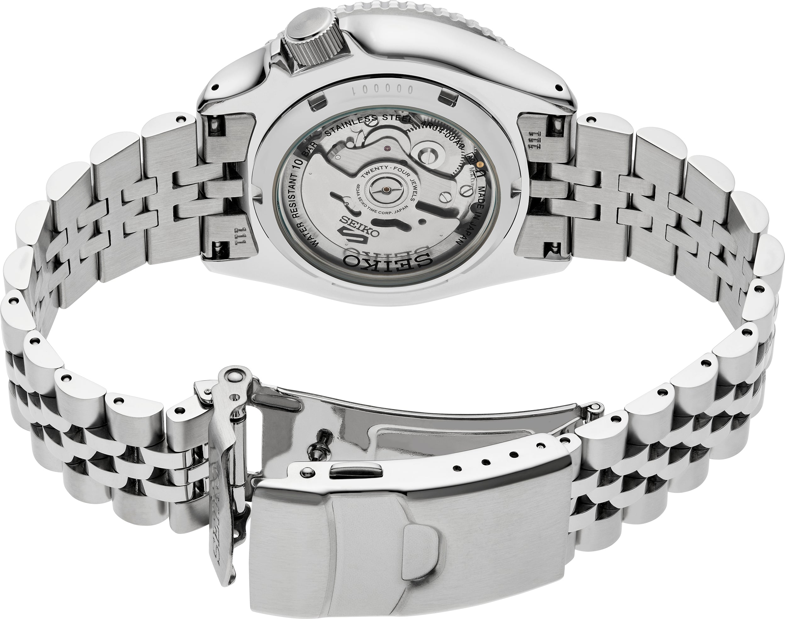 Seiko 5 Sports SKX Sports Style GMT Series. Adding new richness to classic sport/dress design, this dynamic watch offers a new variation on the popular “SKX” style. Equipped with automatic technology that you control with every movement, this versatile watch is powered by a 24-jewel movement that beats at a frequency of 21,60