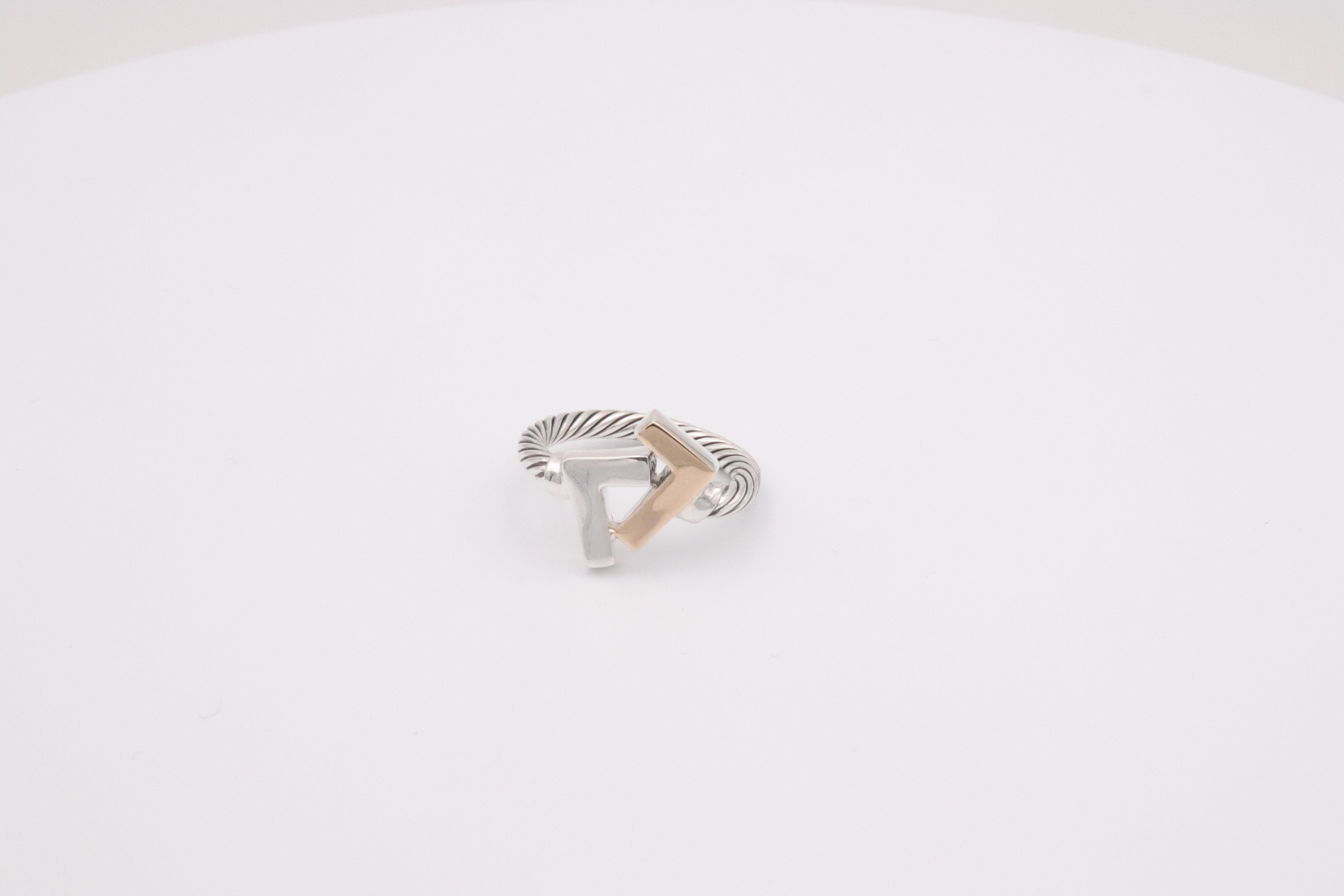 925 Silver/14k Two Tone seven cable Ring.the ring's base is silver with highlights in Gold.comes in most sizes: 5, 6, 7, 8Accentuating the natural motif of the number seven and all it represents. A subtle homage to the auspicious nature of the number. Designed by intuition.