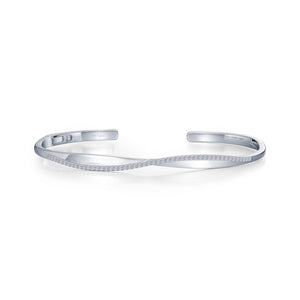 Simple and stylish. Wear it by itself or stack with other bangles. This open-hinged cuff bangle bracelet is set with Lafonn's signature Lassaire simulated diamonds in sterling silver bonded with platinum.