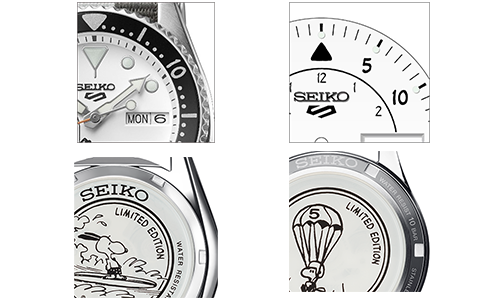 To create a collaborative timepieces that bring the world of the artwork to life on the wrist, the hand-drawn script of Charles Schulz, the creator of the comic strip PEANUTS, is adopted on the bezel display of the SPRK25, on the dial of the SPRK27, and for the 'LIMITED EDITION’ text of both case backs.