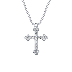 Fashion-forward lifestyle jewelry collection. This designer cross necklace is set with Lafonn's signature Lassaire clear simulated diamonds in sterling silver bonded with platinum.