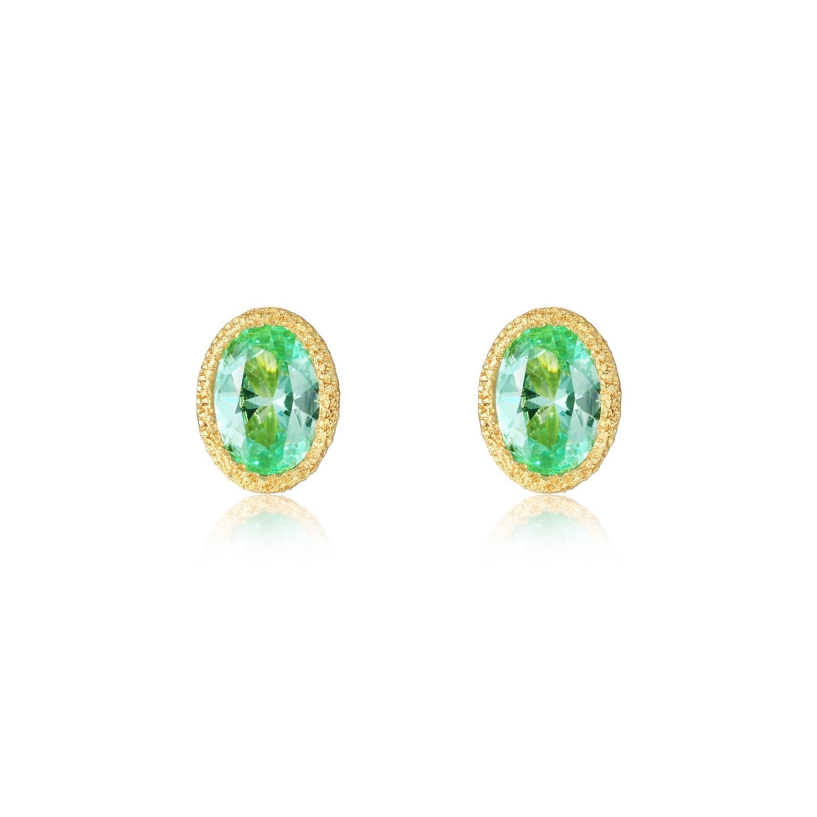 Simple and Trendy. These brushed-finish solitaire stud earrings feature sparkling oval green fancy lab-grown sapphires in sterling silver using Lafonn's exclusive TR Gold, a new and improved plating process that preserves the rich color of gold and enhances the wearability of our gold-plated styles.