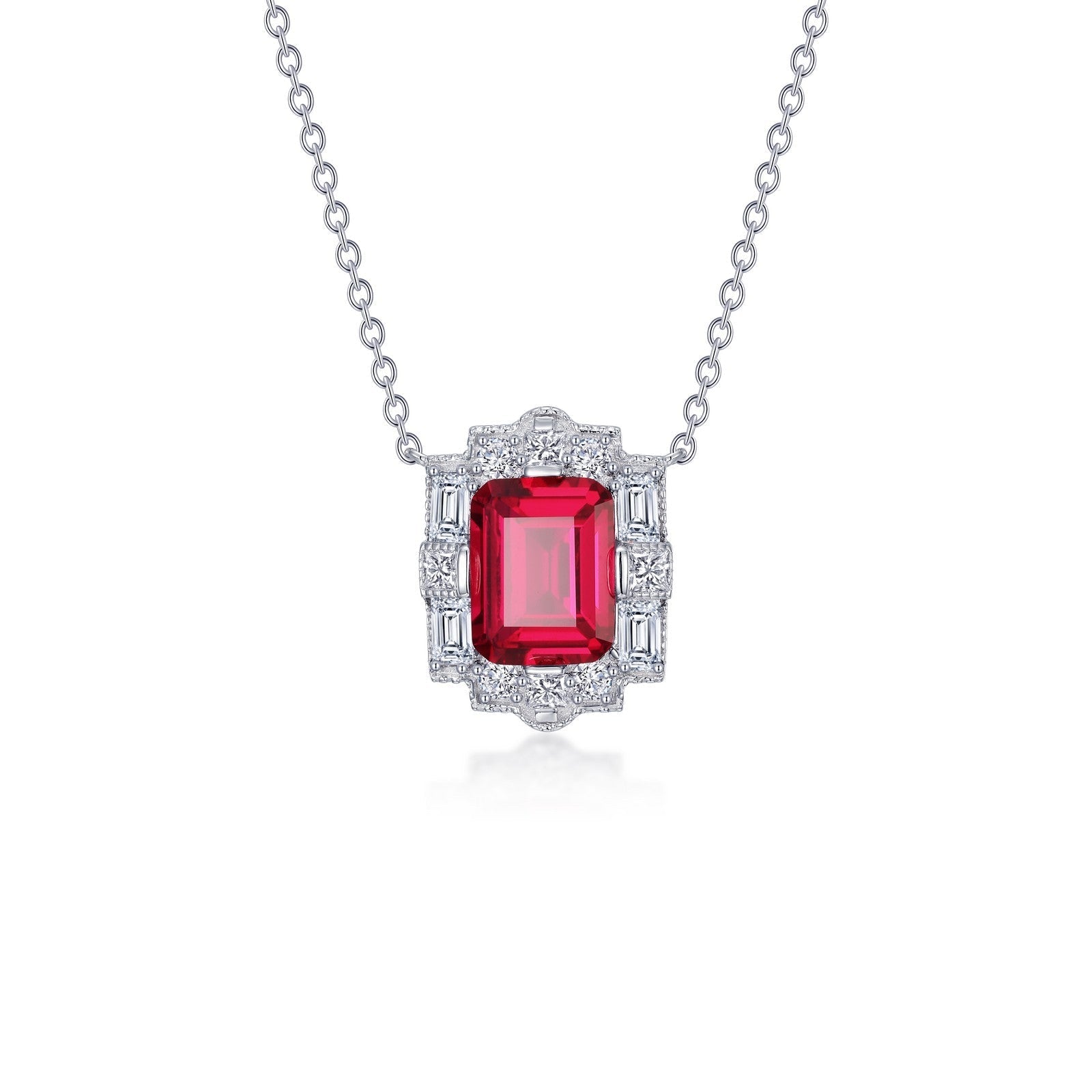 A timeless statement piece. This adjustable halo necklace features an emerald-cut green fancy lab-grown sapphire center stone surrounded by Lafonn's signature Lassaire simulated diamonds. The necklace is set in sterling silver bonded with platinum.