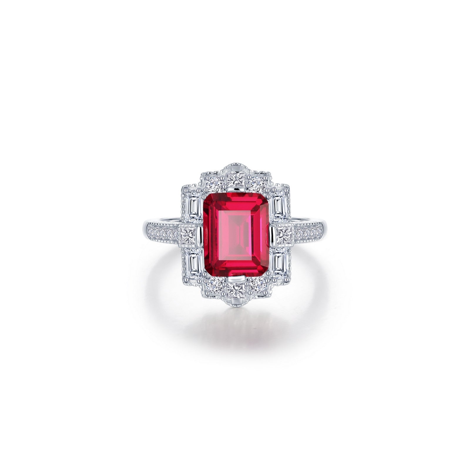 A timeless statement piece. This radiant beauty features an emerald-cut green fancy lab-grown sapphire center stone surrounded by Lafonn's Lassaire simulated diamonds and is set in sterling silver bonded with platinum.