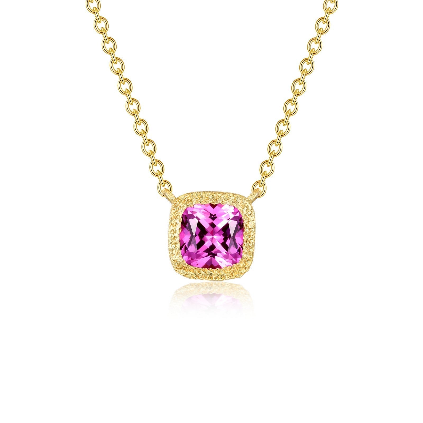 Simple and Trendy. This brushed-finish adjustable solitaire necklace features a sparkling cushion-cut purple fancy lab-grown sapphire in sterling silver using Lafonn's exclusive TR Gold, a new and improved plating process that preserves the rich color of gold and enhances the wearability of our gold-plated styles.