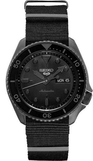 Show your style. Make your move. To a real watch, from a company that knows what real watchmaking is: the Seiko 5 Sports Collection. For reliable timing in your everyday life, this timepiece is powered by an automatic movement with a power reserve of approximately 41 hours and features a day/date calendar and a see-through c
