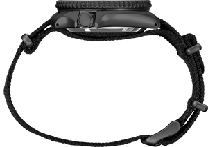 Seiko 5 Sports Collection. Combining black-on-black with a camouflage dial, this dramatic watch adds street styling to a design inspired by vintage field/military looks. Providing automatic technology that you control with every movement, this cutting-edge timepiece is powered by a 24-jewel movement that beats at a frequency