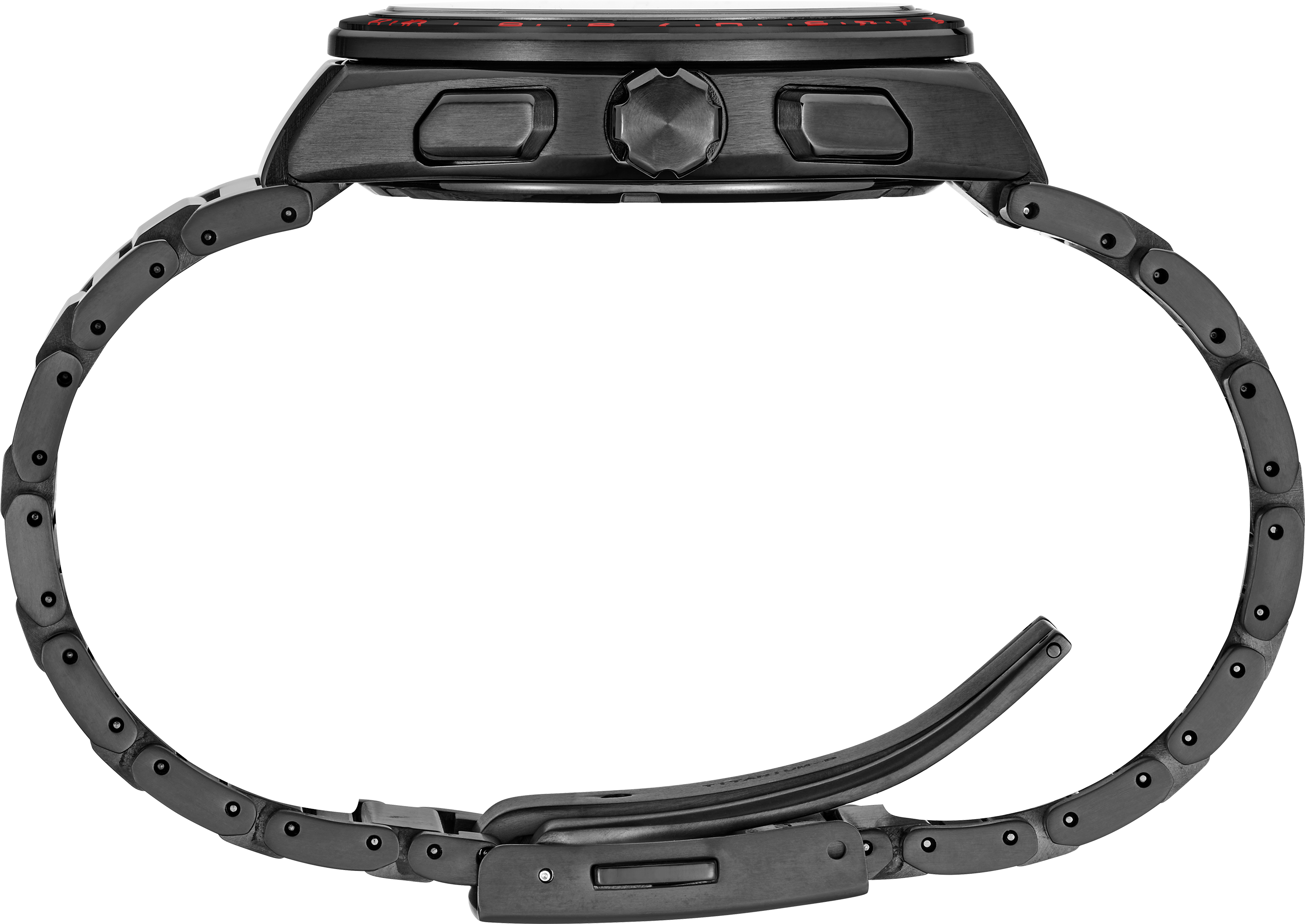Titanium bracelet with black super-hard coating Additional coordinating bi-color silicone strap