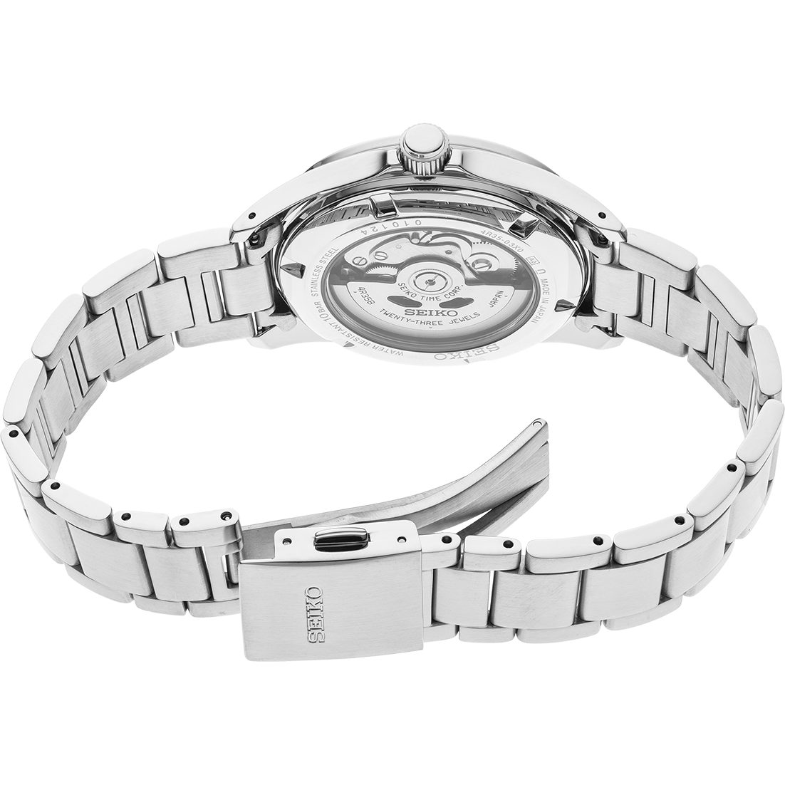 Manual and automatic winding capabilities Water-resistant to 10 bar, 100 meters (330 feet) Power reserve: approximately 41 hours 21,600 vibrations per hour Caliber 4R38
